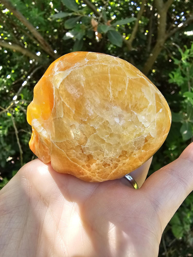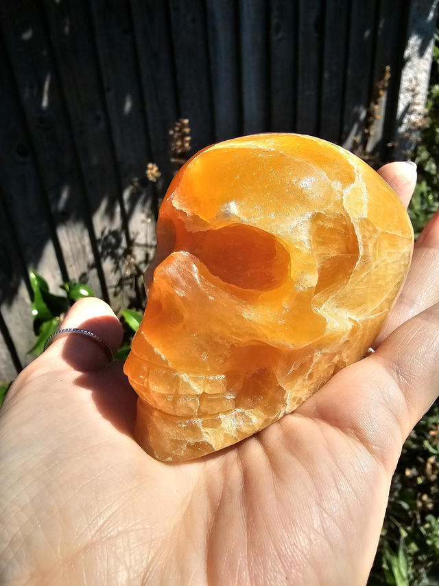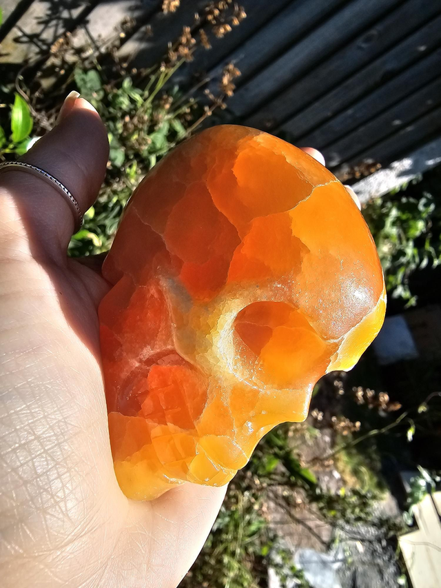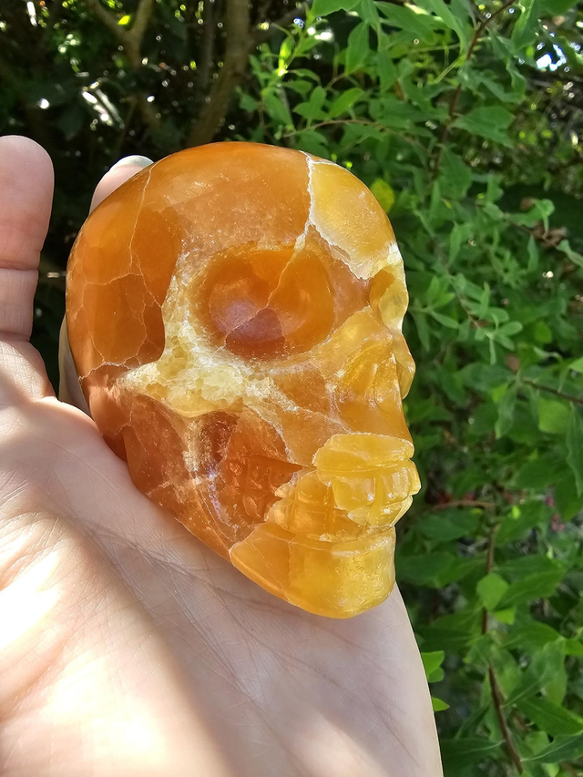 Fantastic colouration on this orange calcite skull, a great addition to any collection.