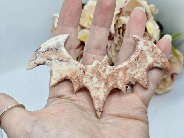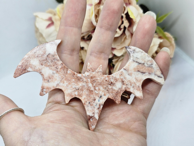 Strawberry Jasper bat carving